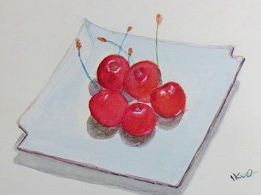 ブルーべリーまっ赤に燃えて夏を待つ ーikuo水彩画人気ブログランキング···