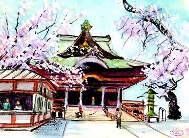 市内東海寺と最後の桜水彩画人気ブログランキング···