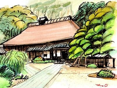 柏市の文化財「吉田邸」にも初秋の風情が感じられるようになりました水彩画人気ブログランキング···