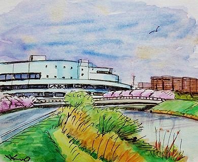 桜満開大堀川水彩画人気ブログランキング···