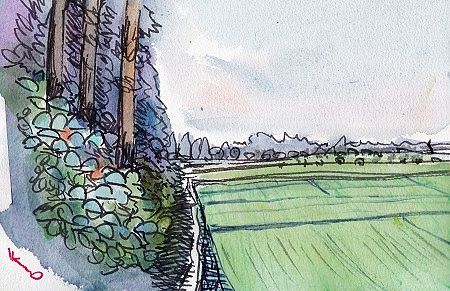 あじさいの咲く水田初秋に誘うゆっくりとした佇まい水彩画人気ブログランキング···